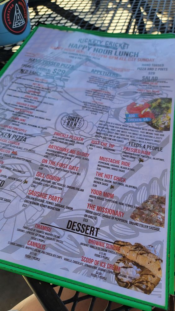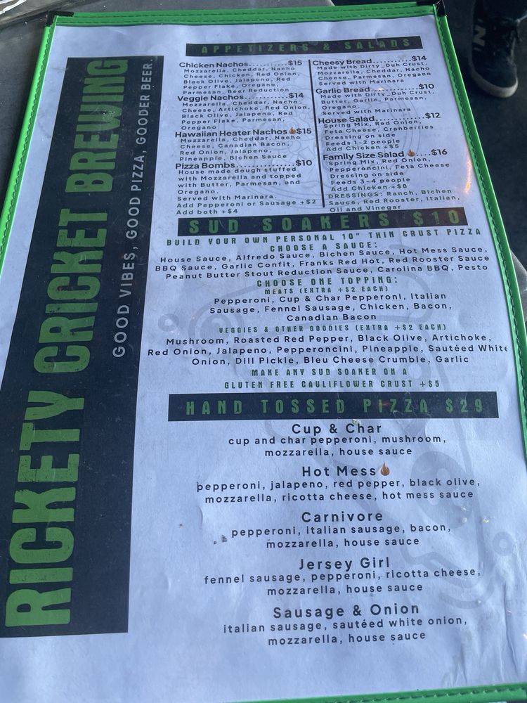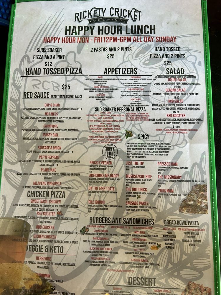 Whether indulging in the zesty 'Artichoke-me-Daddy' pizza or sitting outdoors with a local brew, Rickety Cricket Brewing is a true gem for food lovers and craft beer aficionados alike.