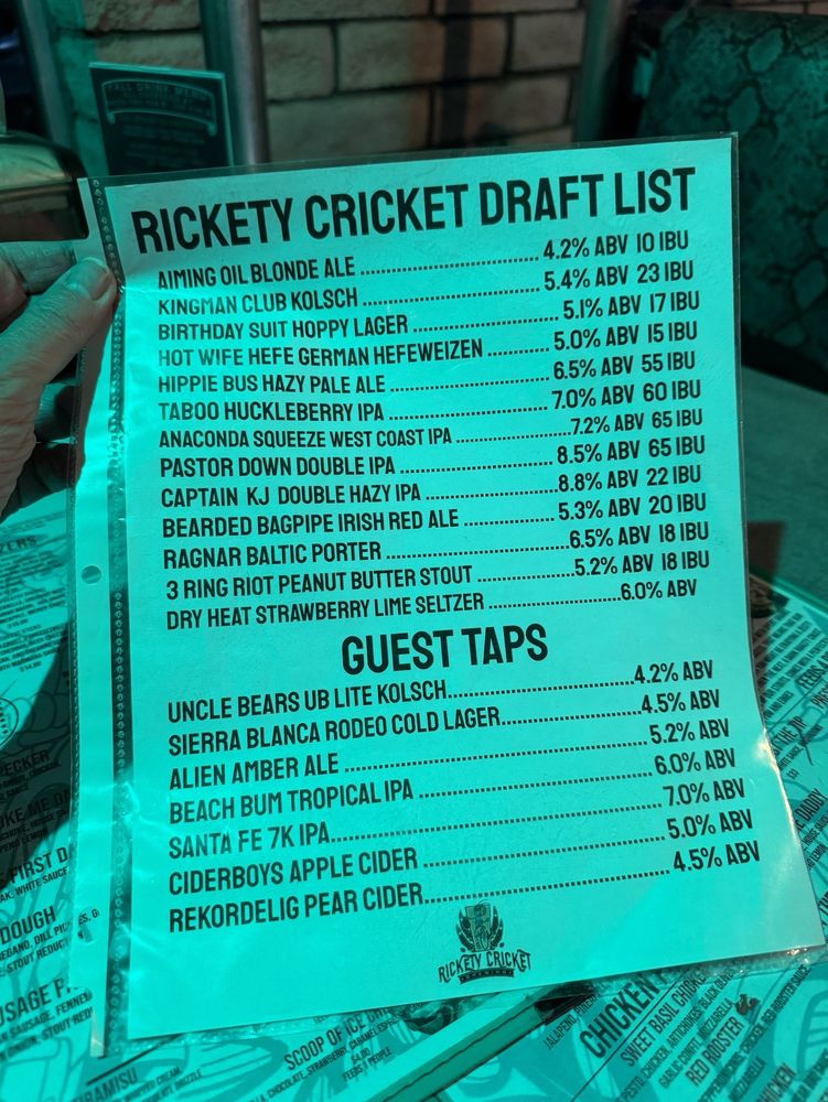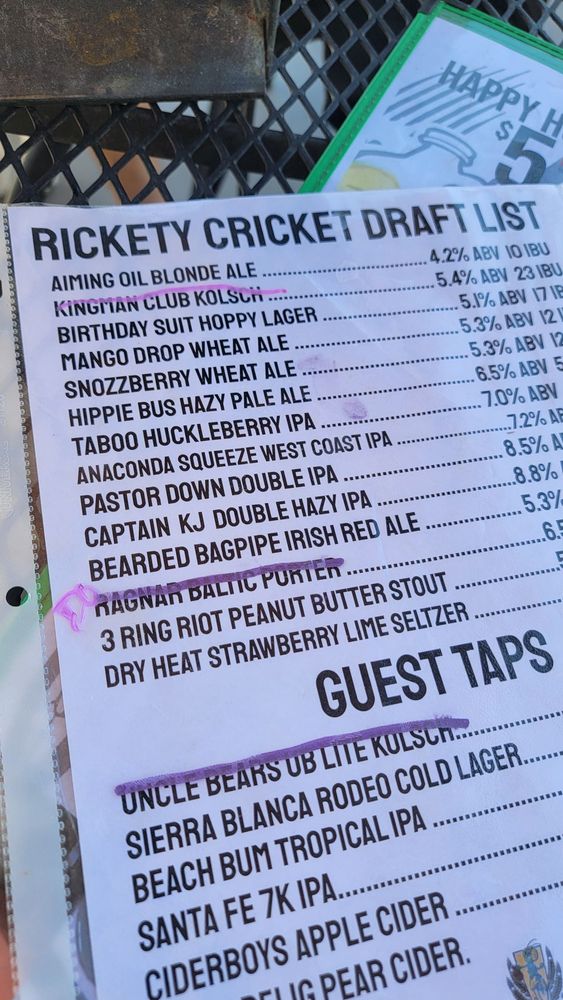 Welcome to Rickety Cricket Brewing, a vibrant slice of Americana nestled in Kingman, AZ, and a delightful stop along Route 66. Specializing in American-style pizza, this casual eatery combines the art of brewing with creativity in the kitchen.